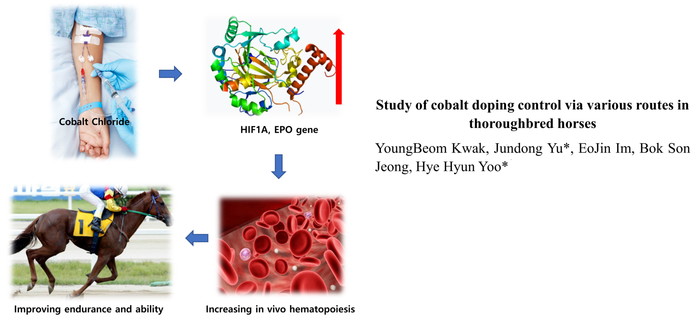 한국마사회 도핑검사소의 곽영범 과장(주저자)와 유준동 부장(교신저자)은 경주마의 혈액 내 농도 변화를 추적하며 ‘코발트’ 남용방법 및 투여 경로를 해석하였다. 기존의 ‘코발트’ 검출만으로는 밝히기 어려웠던 ‘인위적 도핑여부’를 판단할 수 있는 기준을 완성한 것이다.
