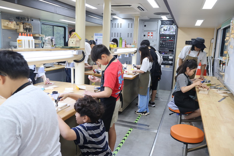 ▲찾아가는 이동식작업장 ‘카(Car)멜레온’ 운영-지역사(가야 역사)와 연계한 맞춤형 목공 기반 메이커 활동