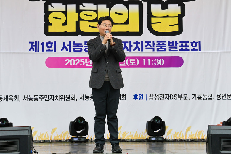이상일 시장은 이어 서농동행정복지센터 광장에서 열린 ‘2025 서농동 주민 화합의 날’과 ‘제1회 서농동 주민자치작품발표회’에 참석했다. 이 시장은 시정 발전에 공헌한 시민 3명을 표창하고, 축하의 뜻을 전했다.