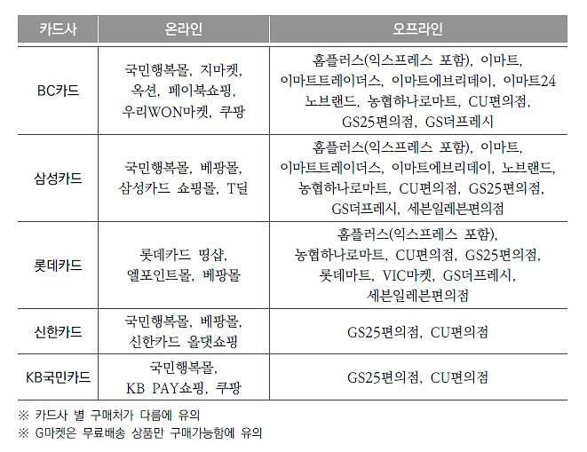 [붙임] 카드사별 결제 가능한 유통점