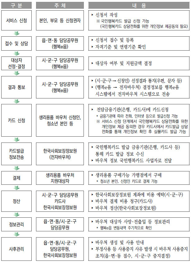 [붙임] 생리용품 바우처 업무 흐름도