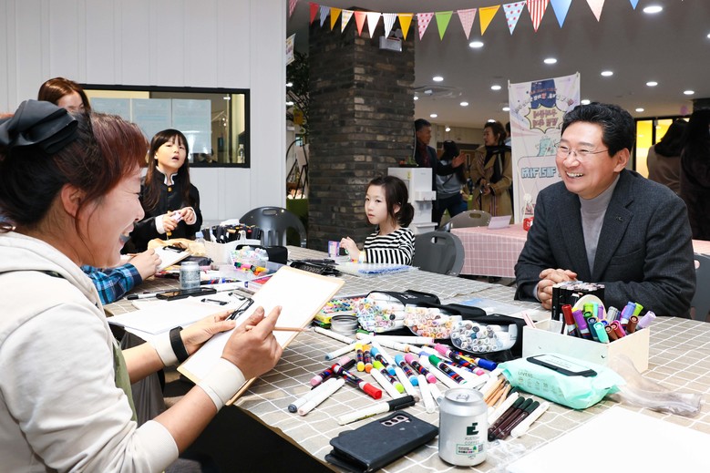 축사를 마친 이 시장은 1층 간식 체험, 목공 체험, 스포츠 게임 등 부스와 2층 무드등과 비즈 키링 제작, 퍼스널 컬러 체험, 캐리커처, 방탈출 게임 등 부스를 둘러보며 청소년과 관계자들을 응원‧격려했다.
