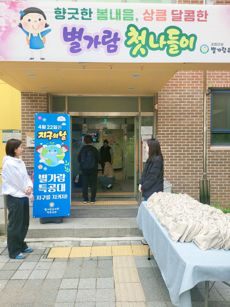 [남양주시 세계타임즈=송민수 기자] 별가람유치원(원장 유은석) 학부모회에서는 4월 22일 지구의 날을 맞이하여 등교시간 유치원 현관 앞에서 ‘제로웨이스트 물품’을 나눠주는 행사를 개최했다.