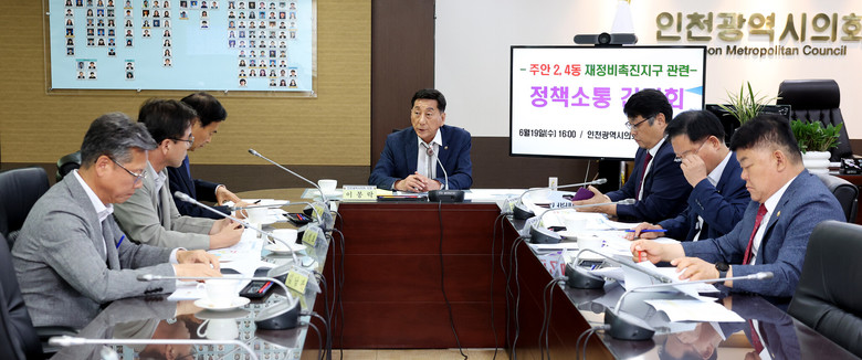 이봉락 의장은 “오늘 논의된 사항은 재개발사업이 활발하게 진행되고 있는 원도심 지역의 공통된 애로사항일 것”이라며 “사업성 확보가 열악한 원도심 지역의 재개발사업 성공을 위해서는 인천시의 행·재정적 지원이 절실하다”고 강조했다.