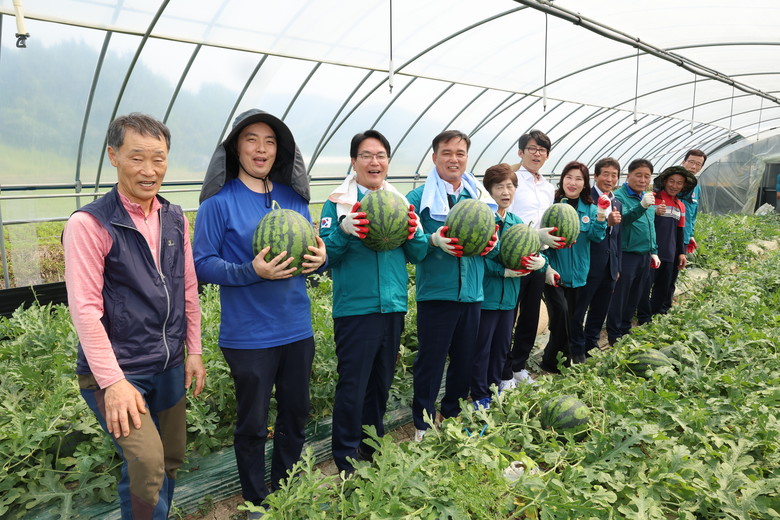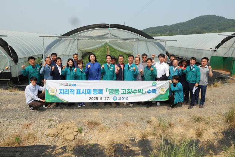 고창군이 27일 오후 성내면 이후극 농가에서 올해 수박 수확 행사를 진행하며 ‘2025년 지리적표시 명품 고창수박’ 수확의 시작을 알렸다.
