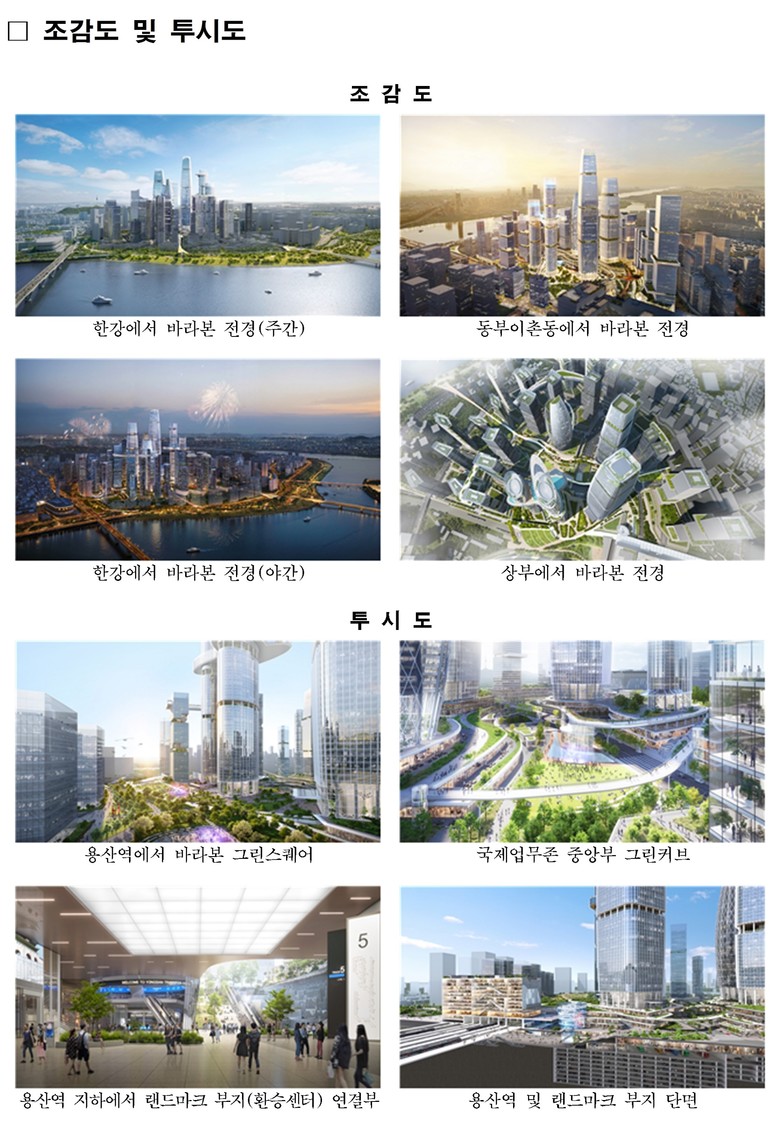 다만, 용산국제업무지구 개발이 가져올 경제적 파급 효과와 서울의 글로벌 도약 기회임을 고려, 국가 경쟁력 강화와 글로벌 비즈니스 중심지로서의 위상 제고라는 당초의 계획 취지를 유지한다는 방침이다.