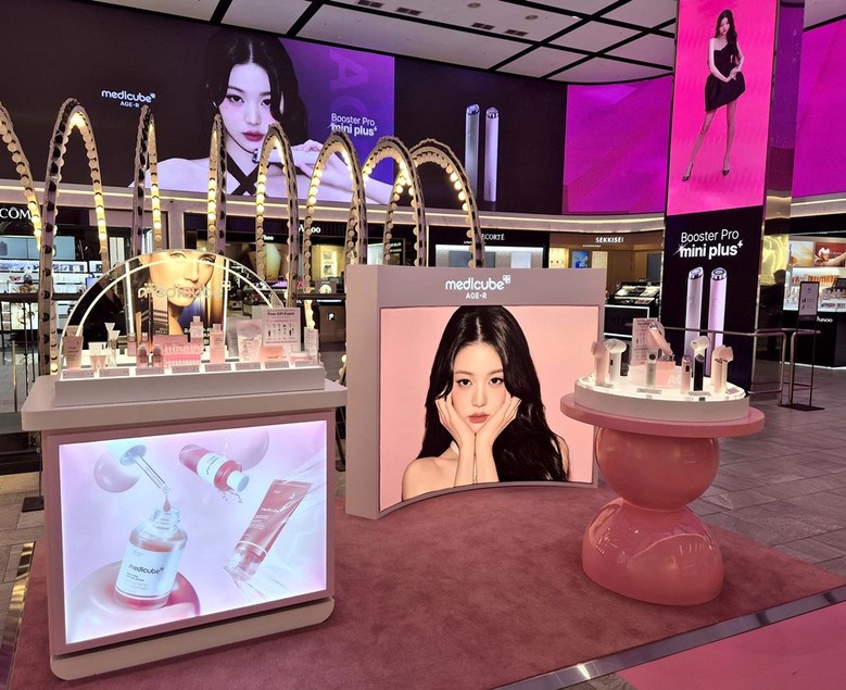 메디큐브는 국내 면세점 중 신세계면세점에만 단독 입점한 K-뷰티 대표 브랜드로, 현재 뷰티 카테고리 1위를 기록하고 있다. 특히 스테디셀러 ‘에이지-알 부스터 프로’는 ‘출국 직전 인기템 1위’로 선정될 만큼 여행객들 사이에서 큰 인기를 얻고 있다.