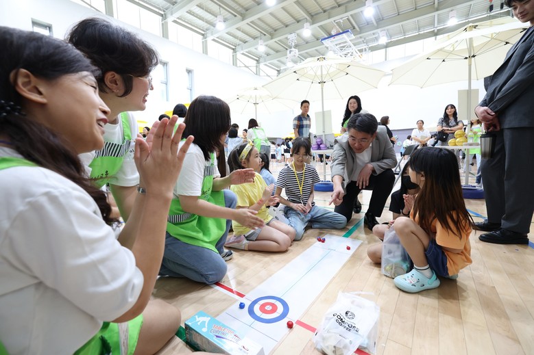 | ▲ 덕암초등학교 ‘보석같은하루’ 활동 모습_플라스틱 디스크 컬링 게임 |