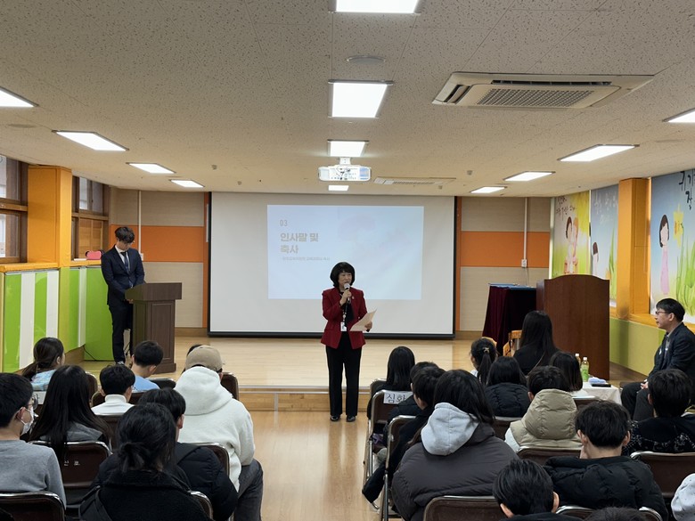 본 수료식은 2023 발명교육센터 초중등과정을 수료한 학생 44여 명과 김명순 파주교육지원청 교육과장, 문종석 검산초등학교 교장, 발명교육센터 강사 등이 참석한 가운데 진행되었다.