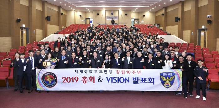 세계경찰무도연맹은 창립 10주년을 맞아 2019총회 &VISION 발표회를 내외빈 및 회원 300여명이 참석한 가운데 2018년 12월 29일 국회의사당 국회의원회관 대회의실에서 개최됐다.