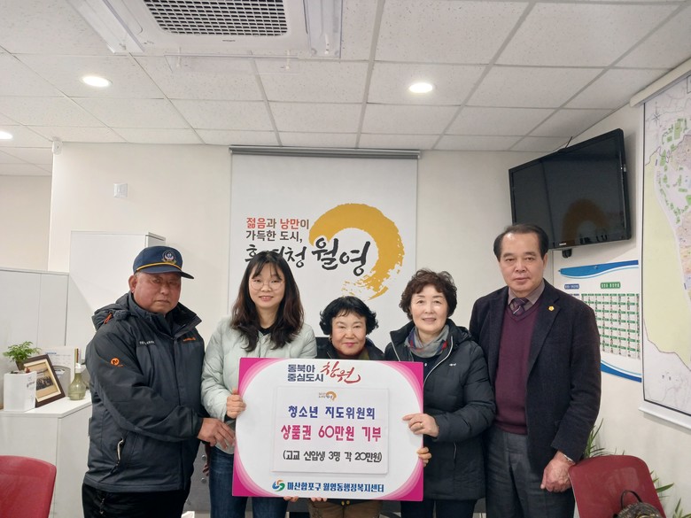 오성석 월영동장은 “청소년지도위원회 회원들의 마음이 소외계층 청소년에게 희망으로 전달되어 더욱더 밝고 고운 월영동이 될 것 같다.”며 “월영동 주민을 대표하여 감사의 말씀을 전한다.”고 밝혔다.