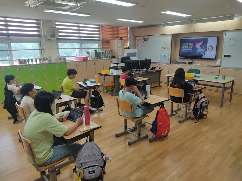 적서초는 도서벽지학교로 기존의 집합교육 대신, 온라인으로 실시간 강의를 들을 수 있도록 1인 1태블릿 시스템을 준비하여 이에 따라 학생들은 개인용 태블릿으로 실시간 강의를 수강하고, 채팅을 활용해 강사와 소통하며 교육 프로그램에 참여하였다.