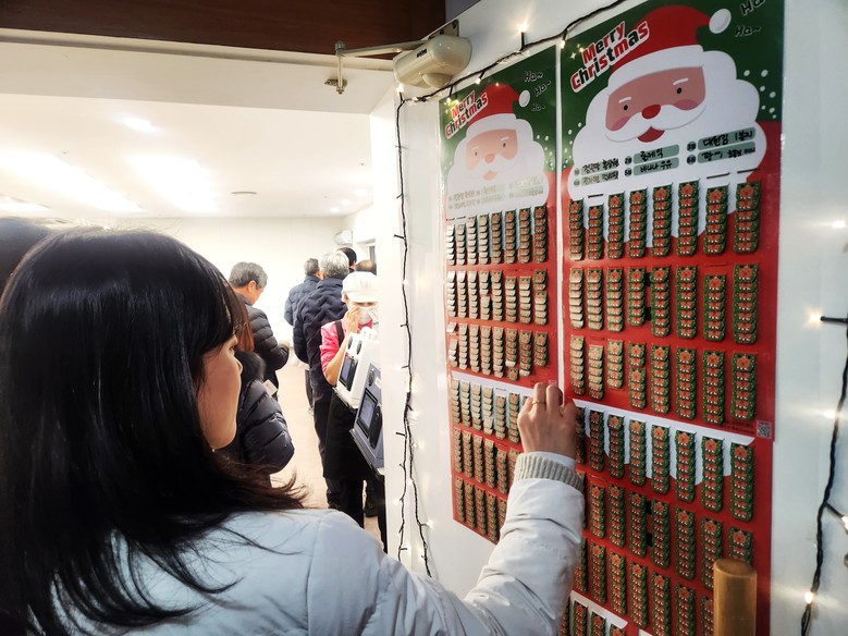 | ▲ 경품 뽑는 직원 모습 |