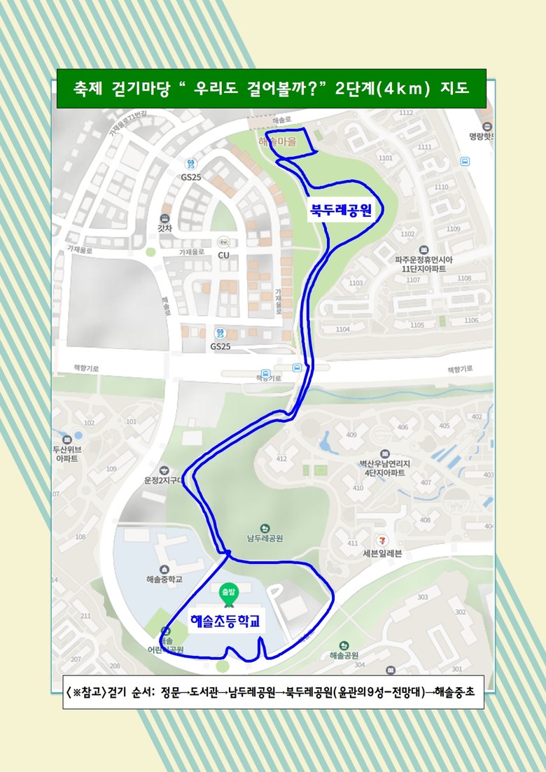 [파주시 세계타임즈=송민수 기자] 해솔초등학교(교장 최순월)는 10월 21일부터 5일간 ‘해솔 가을꿈 축제’주간을 운영한다. 축제명도 학생들이 공모에 참여하였고, 교사, 학부모 공동체 모두의 투표를 통해 선정하였다. 축제주간에 운영하는 모든 프로그램도 한 해동안의 교육활동 결과로, 학생들이 직접 기획하고 참여할 수 있도록 하였다.