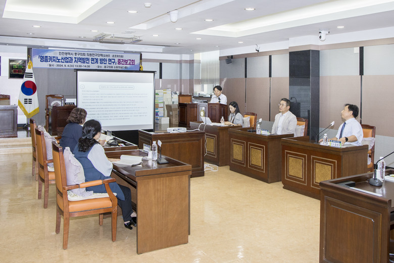 [중구 세계타임즈=심하린 기자] 인천 중구의회 의원연구단체인 ‘영종카지노산업 상생방안연구회(대표의원 김광호, 의원 윤효화)’는 지난 4일 중구의회 소회의실에서 ‘영종카지노산업과 지역발전 연계 방안’에 대한 연구용역 중간보고회를 개최했다.