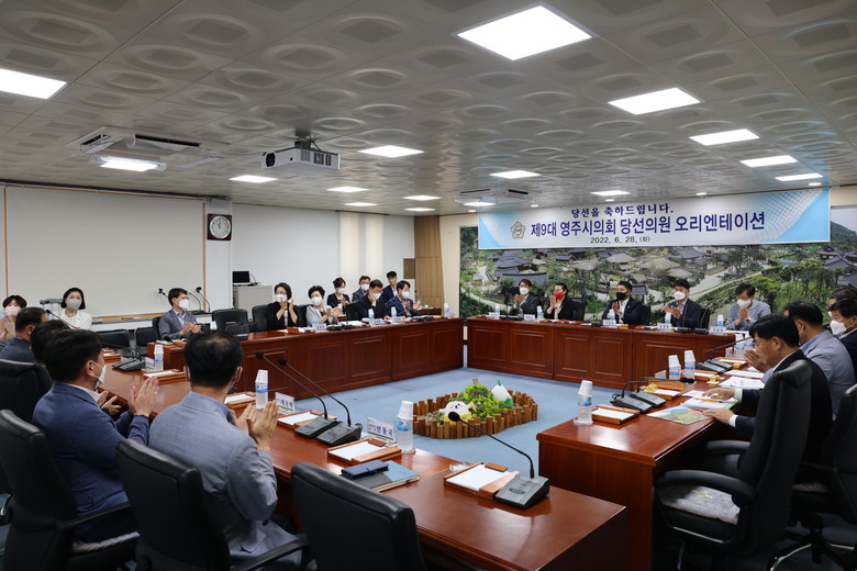 이날 오리엔테이션에는 제9대 영주시의회 의원 당선자들 간의 상호 인사와 더불어 사전에 의회 운영에 대한 안내를 통해 새로운 의원들의 효율적인 의정활동을 유도하기 위해 마련되었다.