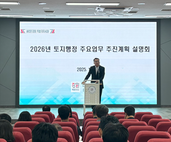 [강원도 세계타임즈=김민석 기자] 강원특별자치도(도지사 김진태)는 10월 17일(금) 오후 1시, 강원특별자치도공무원교육원에서 「2026년 토지행정 주요업무 추진계획 설명회」를 개최했다고 밝혔다.