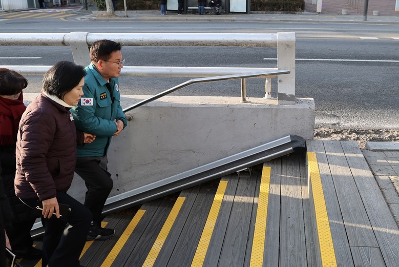 박 구청장은 계단 폭과 경사, 이용 동선 등을 살피며 주민 이용에 불편함이 없는지 확인했다.