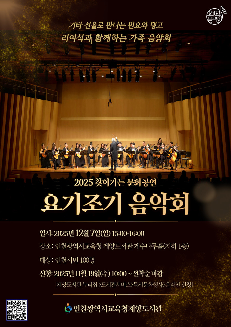 이번 공연은 ‘리여석과 함께하는 가족 음악회’로 진행되며, 리여석 기타오케스트라가 클래식 명곡, 민요, 탱고 등 다양한 장르의 곡을 선보인다.