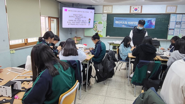 교문중학교 이명자 교장은 “디지털네이티브 세대인 우리 학생들에게 미래사회의 핵심역량인 디지털 역량을 높일 수 있는 교육에 중점을 두고 있습니다. 메타버스, AI 교육 등 교육과정과 연계한 디지털기반 창의체험 교육을 통해 배움의 시공간을 확장하여 학생들의 융복합적 사고력을 함양하고, 동시에 메타버스와 같은 가상현실 공간에서 놀이하듯 배우고 나누는 경험을 통해 문제해결력 및 협업과 배려를 배우며 디지털 시민의식을 갖춘 사람으로 성장할 수 있도록 노력하고 있습니다”고 말했다.