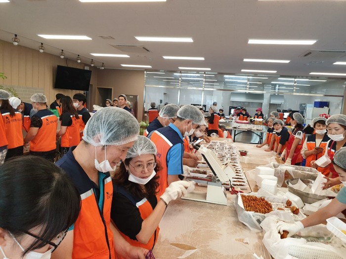 이날 밑반찬 봉사는 나눔봉사단을 비롯해서 자원봉사자 100여명이 양파초절임, 깻잎무침, 김치전과 감자전을 직접 만들어서 대전시 소외계층 270가정에 직접 배달울 하였다.
