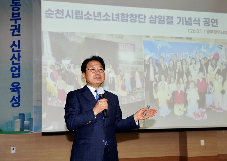 강 시장은 통합특별시 출범 이후 전남 동부권 발전전략으로 ▲광주권-동부권 연계 반도체 메가벨트 조성 ▲AI·반도체 인재양성 사다리 확대 ▲이차전지 산업 육성 ▲광역교통망을 통한 1시간 생활권 조성 ▲중소도시형 통합돌봄 특구 지정 등을 제시했다.