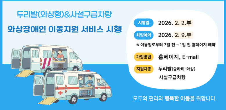 이와 함께, 시는 와상장애인 이동지원서비스를 두리발 외에도 사설구급차량을 이용해 투 트랙으로 시행한다.