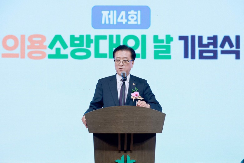 [대전 세계타임즈=이채봉 기자] 대전시의회 조원휘 의장은 19일 대전시청에서 개최된 제4회 의용소방대의 날 기념식에 참석해 그동안 지역사회 안전지킴이 역할을 톡톡히 해온 의용소방대 활동에 깊은 감사를 표했다.