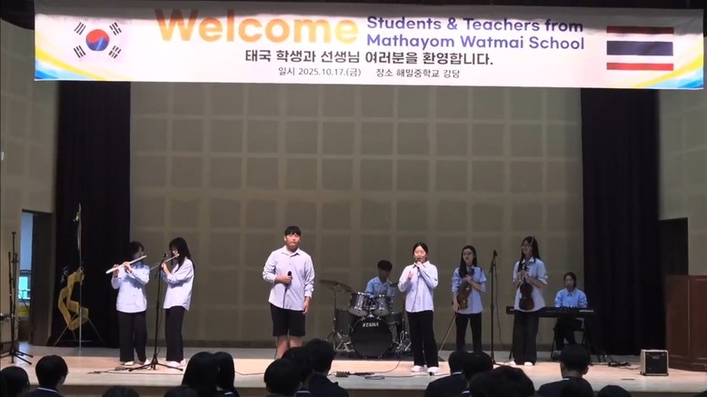 [세종 세계타임즈=이채봉 기자] 세종 해밀중학교(교장 임정진)는 10월 17일(금) 본교에서 태국 Mathayom Watmai Krongthong School 학생 및 교직원을 맞이하여 국제교류활동을 실시했다고 밝혔다.