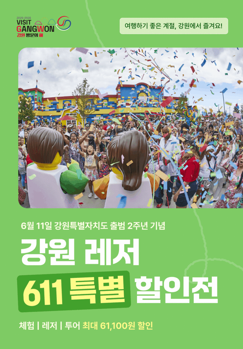 강원관광재단 최성현 대표이사는 “강원특별자치도 출범 2주년을 기념해 보다 많은 여행객이 강원의 다채로운 즐길 거리를 합리적인 가격에 경험할 수 있도록 기획한 이벤트”라며, “지역별 쿠폰 확대로 더 많은 시군의 관광 자원이 활성화되기를 기대한다”고 밝혔다.