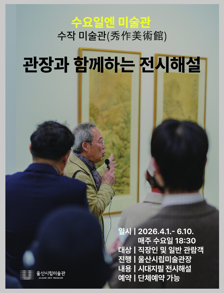 한편 ‘수작미술관’과 관련된 전시해설 예약 및 관람에 관한 세부 사항은울산시립미술관 누리집(https://www.ulsan.go.kr/s/uam)을 참고하거나 전화(☎052-229-8423)로 문의하면 된다.