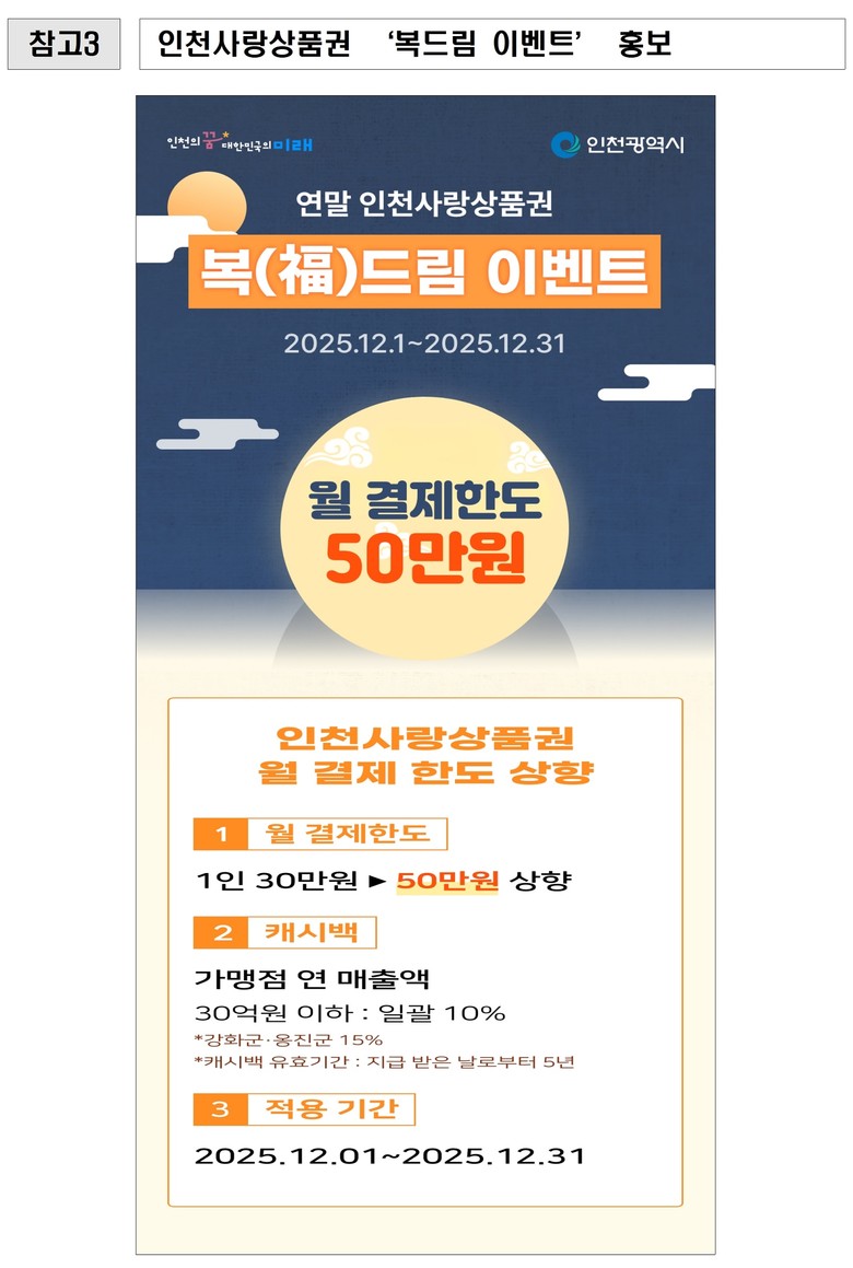 인천시, 소상공인 곁으로! 연말 인천사랑상품권 50만 원 상향으로 지역경제 활력 불어 넣다