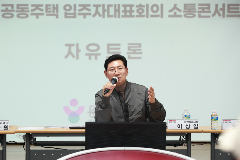 [용인시 세계타임즈=송민수 기자] 이상일 용인특례시장은 19일 오후 기흥구청 다목적홀에서 지역 34개 공동주택 입주자대표 44명과 ‘입주대표의회의 소통콘서트’를 열고 단지별 문제나 불편을 개선하는 방안 등을 논의했다.