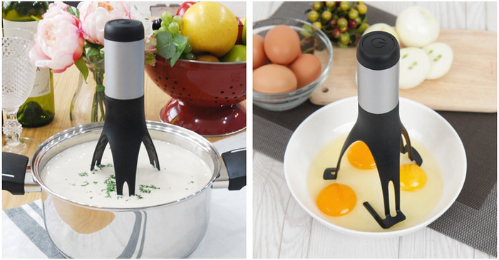 이노첸의 푸드스터러는 소스, 수프, 죽 등의 음식물을 자동으로 저어주는 삼발이 형태의 조리기구다. 버튼을 누르면 3단계 속도로 회전해 팔을 젓는 수고를 들이지 않고 음식물을 혼합할 수 있다. 가스레인지 열에도 안전하게 사용할 수 있는 내구성을 갖췄으며, 깊이가 있는 냄비에도 사용할 수 있는 크기로 제작됐다. 건전지 전원방식으로 간편하게 휴대해 야외에서도 활용도가 높다.