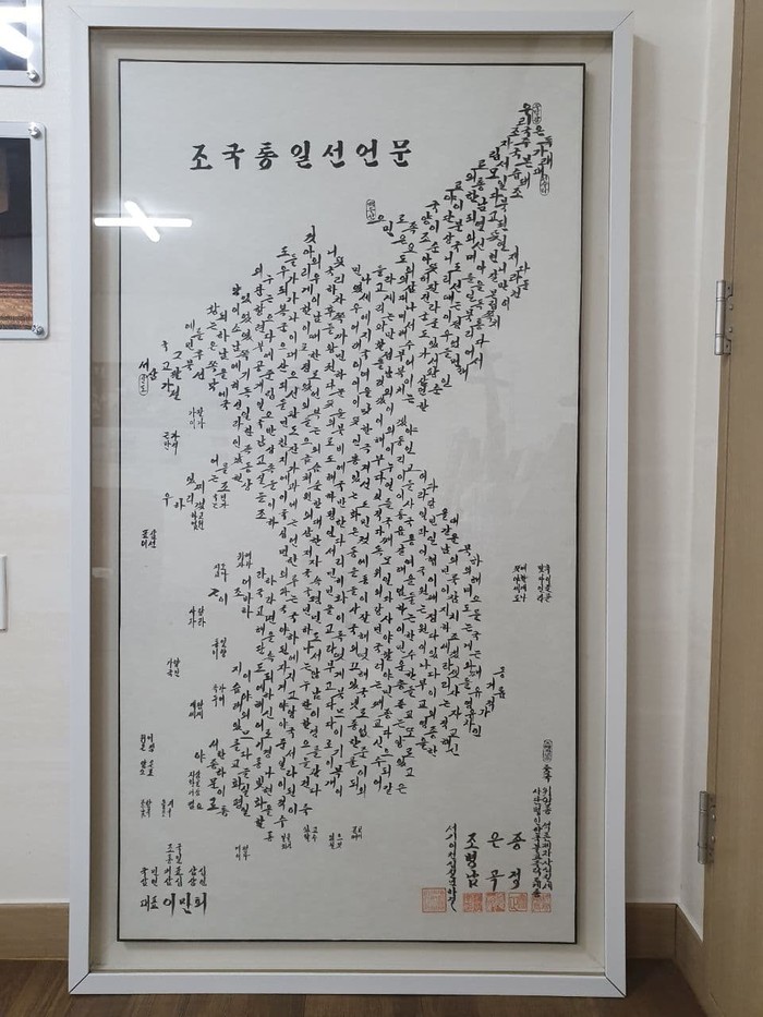 HWPL에서 발표한 조국통일 선언문을 은곡 대종사는 붓 글씨 한반도 지도모양으로 사본을 만들어 홍보를 하던 중 법당의 일부를 평화단체와 함께 사용하기 위해 종교연합사무실로 제공해서 현판식을 갖게 된 것이다.