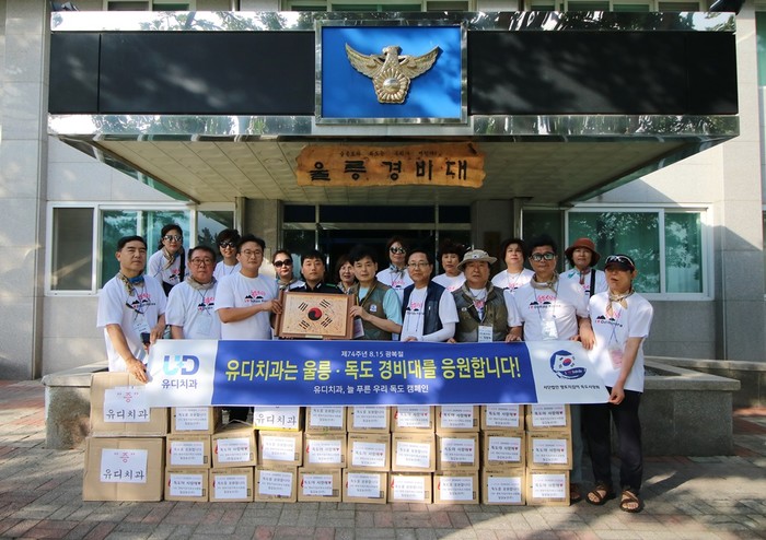 (사)영토지킴이 독도사랑회(길종성 회장)가 주관하고 행정안전부와 유디치과가 후원한 이번 행사는 민족의 섬, 독도를 바로 알리고 지속적인 관심과 독도 수호활동에 앞장서고자 참여했다. 유디치과는 독도와 울릉도를 지키는 경비대원들의 노고에 감사하기 위해 직접 제작한 ‘독도칫솔세트’를 증정했다. 또한 울릉노인복지관, 경상북도 장애인복지관 울릉분과에 독도칫솔세트와 틀니용품을 전달하고 이 후 지속적으로 후원할 예정이다. 이 밖에도 한국 광복군 70명의 서명이 담긴 ‘한국 광복군 서명문 태극기’를 나무족자로 제작해 독도·울릉도 경비대에 전달했다.