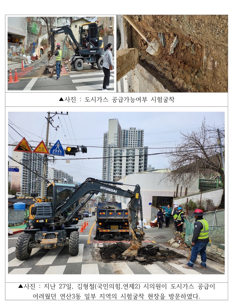 한편, 지난 27일 시험 굴착으로 도시가스 공급이 가능하게 된 연제구 연산3동의 해당 지역은 빠르면 올해 하반기, 늦어도 내년 중에 공사가 진행될 예정이다.