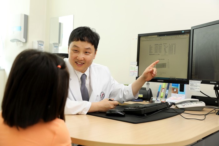 | ▲한림대동탄성심병원 심영석 교수가 한 소아청소년과 진료 상담하고 있다. |