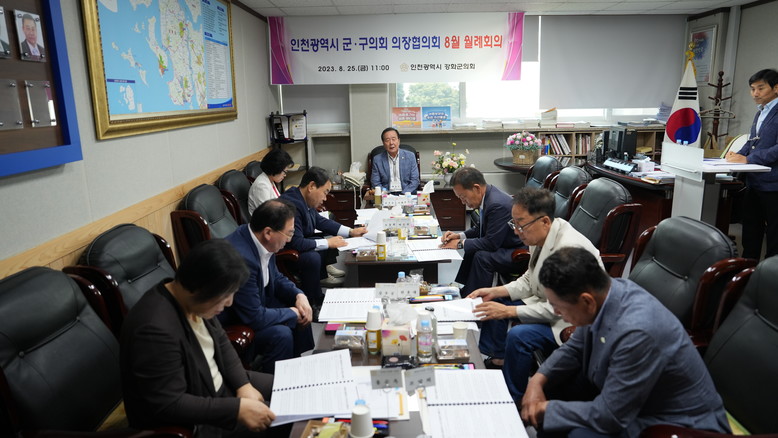[강화군 세계타임즈=심하린 기자] 강화군의회에서 지난 25일 인천광역시 군‧구의회의장협의회 8월 월례회의를 개최했다.