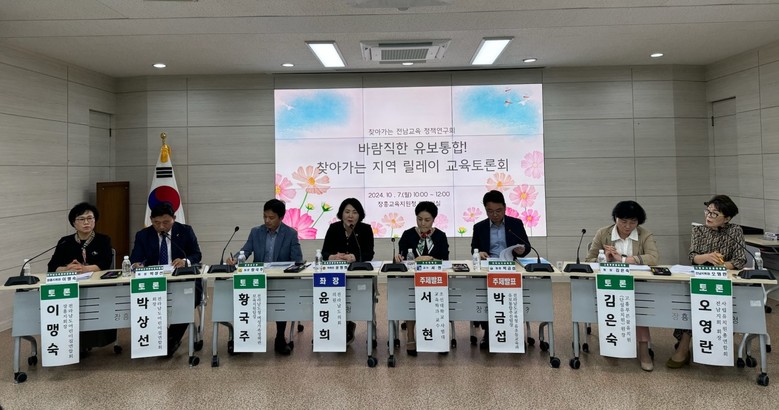 [전남 세계타임즈=우덕현 기자] 전라남도의회 ‘찾아가는 전남교육 정책연구회’ 대표의원 박경미 의원은 지난 10월 7일에 장흥교육지원청 대회의실에서 유보통합을 주제로 토론회를 개최했다.
