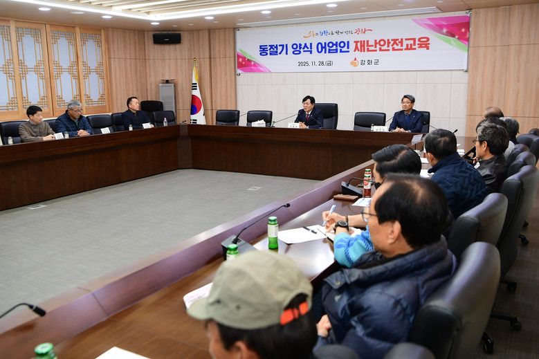 [강화군 세계타임즈=심하린 기자] 강화군(군수 박용철)은 지난 11월 28일 양식 어업인의 안전 인식을 높이고, 현장의 고충을 청취하기 위해 ‘2025년 양식어업인 재난안전교육’을 실시했다.