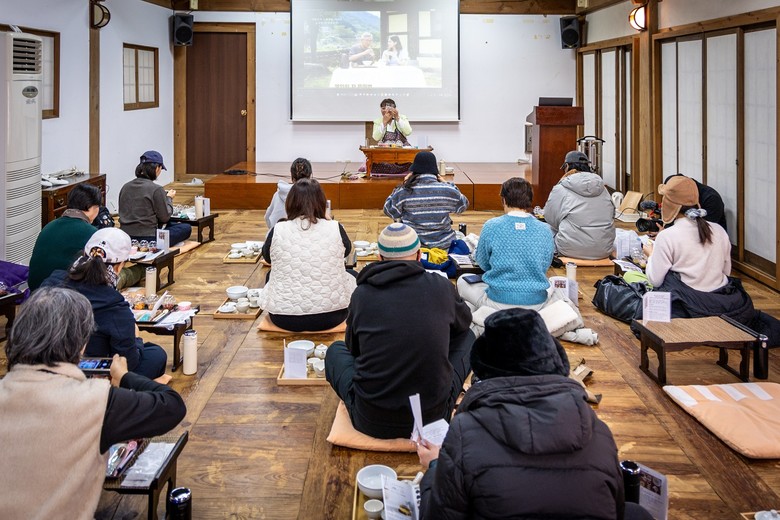 | ▲ 다올재에서 녹차 훈증 체험을 마친 참가자들이 따뜻한 힐링의 시간을 보내고 있다 |