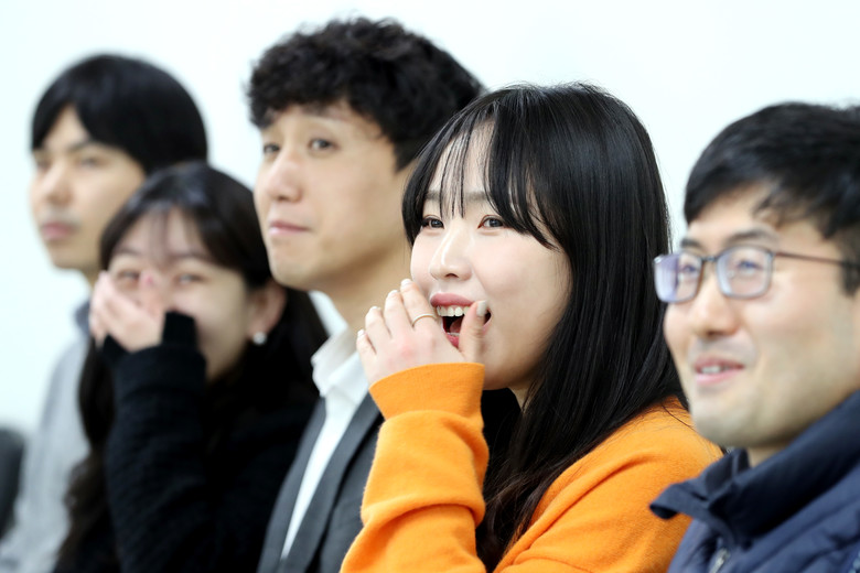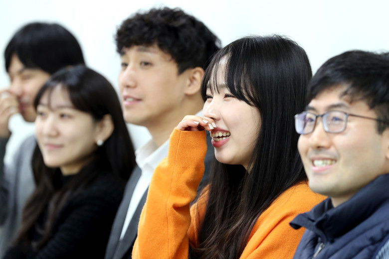 [충북 세계타임즈=이현진 기자] 실내 마스크 의무 착용이 해제된 첫 날인 30일 충북도의회 사무처 직원들이 회의실에서 열린 한 간담회에서 마스크를 벗은 채 활짝 웃고 있다./충북도의회 제공