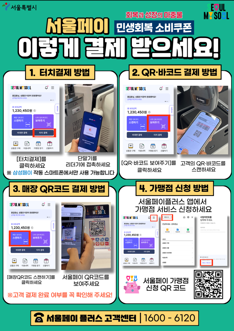 이번 추가된 가맹점을 대상으로 관할 자치구 주민센터를 통해 민생회복 소비쿠폰의 결제 방법 및 서울페이 가맹점 모드 신청 방법 등을 안내할 계획이다.