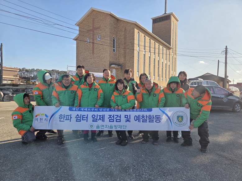 [이천시 세계타임즈=송민수 기자] 율면자율방재단(단장 왕영목)은 1월 22일, 겨울철 한파에 대비해 율면 관내 한파쉼터로 운영 중인 경로당을 대상으로 전수점검을 실시했다.
