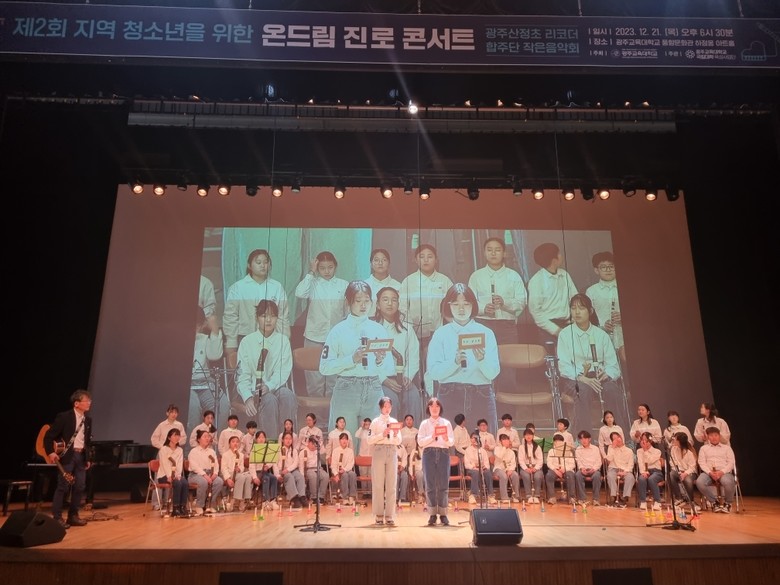 3일 산정초에 따르면 이번 연주는 광주교육대학교가 개최한 진로 콘서트의 일환으로 산정초 학생들을 초청해 이뤄졌다. 학생들은 지난 4월부터 이상훈 선생님과 함께 매일 중간놀이 시간과 점심시간을 이용해 연습한 결과를 이 자리에서 선보였다.