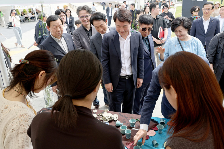 [대전 세계타임즈=이채봉 기자] 대전시의회 이상래 의장은 28일 대전시립미술관 광장에서 열린 ‘2024년 대전 미술품 직거래 프리마켓’에 참석해 박경수 대전사랑운동센터장, 김숙현 대전시립미술관 후원회장을 비롯한 내빈들과 인사를 나눴다.
