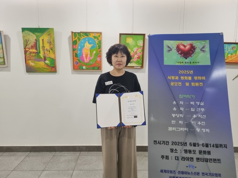 지난 6월 9일부터 14일까지 일주일동안 서울 영등포문화원에서 더라이언엔터테인먼트(대표 박영실)가 사랑과 평화를 주제로 한 공모전 및 회원전이 열렸다.