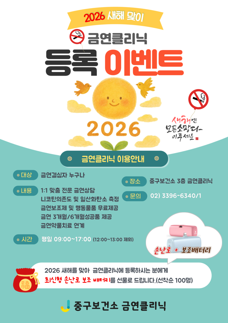 구 관계자는 “2026년 새해를 맞아 금연을 결심한 주민이 중도에 포기하지 않도록 중구가 든든한 동반자가 되어 응원하며 돕겠다”고 전했다.
