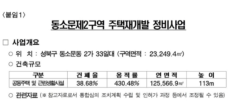 서울시는 “동소문2구역 재개발은 단순한 주거 공급을 넘어, 천변을 중심으로 쾌적한 마을을 조성하는 강북 전성시대를 여는 사례”라며, “신속통합기획 시즌2를 적용해 주택 공급이 신속히 이루어지도록 사업 관리를 철저히 하겠다”고 말했다. 이어 “앞으로도 정비사업 시 해당 지역의 특성을 반영한 정비계획으로 주민 삶의 질을 높이겠다”고 덧붙였다.